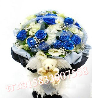 蓝玫瑰 紫玫瑰 混搭花束
